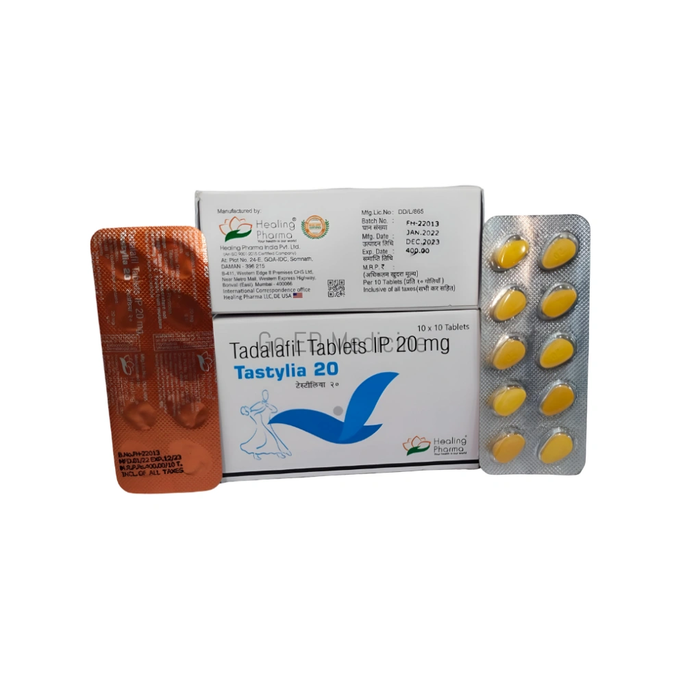 Tastylia 20mg Tadalafil Tablets are manufactured by Healing Pharma India Pvt Ltd, a pharmaceutical company based in India known for producing a variety of generic medicines, including erectile dysfunction treatments like Tastylia. This company supplies its products domestically and for international markets.